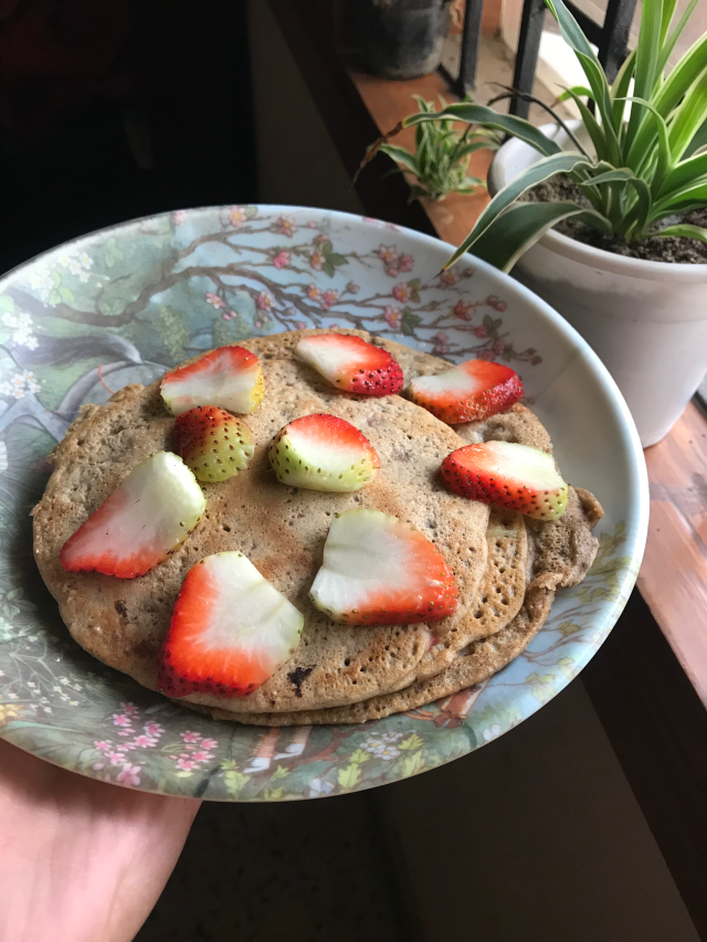 Suzna Wahab sent me a lovely pancake recipe on Instagram, and I was all excited to try it until I realised that I didn’t have most of the ingredients. So I checked my pantry and quickly put together something with my most *healthy* ingredients and this turned out to be pretty awesome!