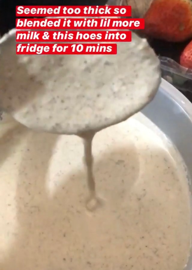 - The blended mixture should have the consistency of dosa batter. If you have NO idea what that means, ok – the consistency should be like that of a thick milkshake. If it’s plopping (or takes forever to drip out of the blender) I recommend you add a little more milk and blend it again