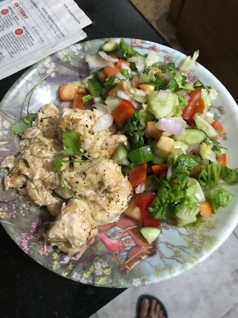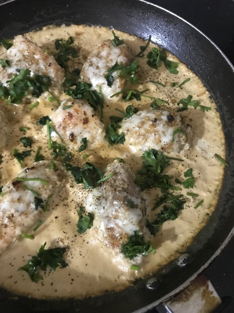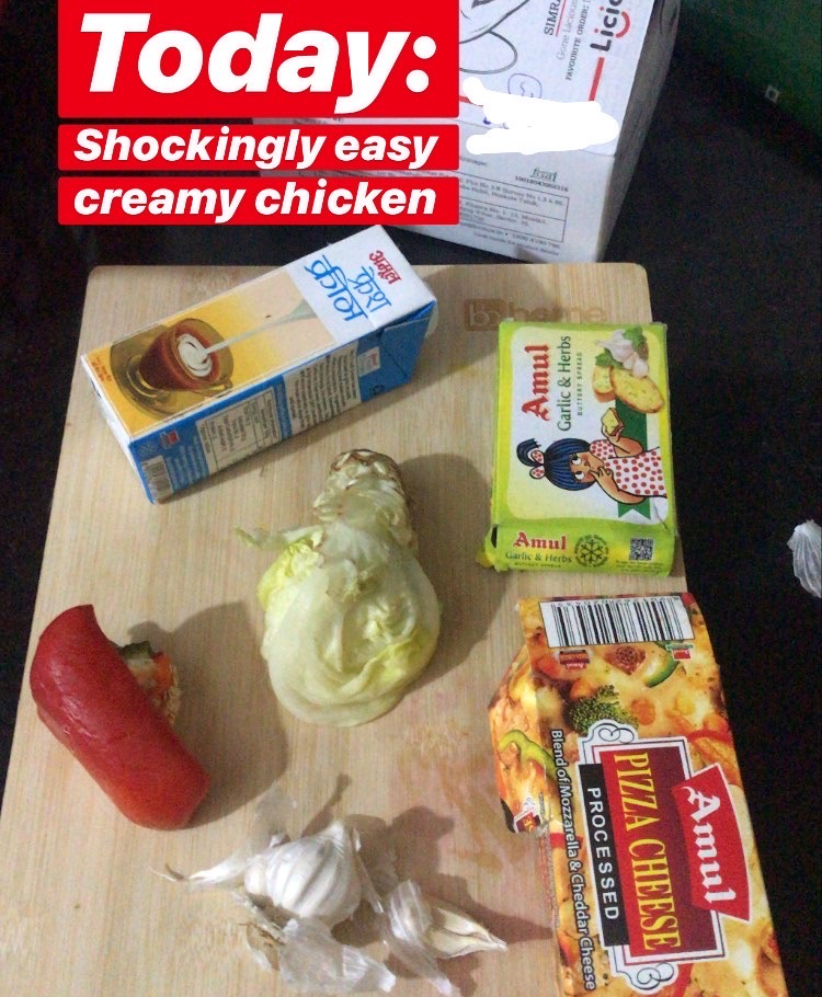 I found this recipe on Family Food on the Table when I was looking for ‘healthy chicken recipes’ and it is SHOCKING how easy this is. I swapped some ingredients with what was available in India. It’s my favourite go-to recipe when I want to impress someone, when I want something warm and decadent or when I’m not in the mood to spend too much time cooking. It’s extremely quick and it’s turned out absolutely delicious every time I’ve made it. So delicious, that there has not been a time when I have not used a spare piece of roti/bread to scoop up the leftover gravy from the pan before putting it in the sink. So tasty, you just CANNOT let anything go to waste.
