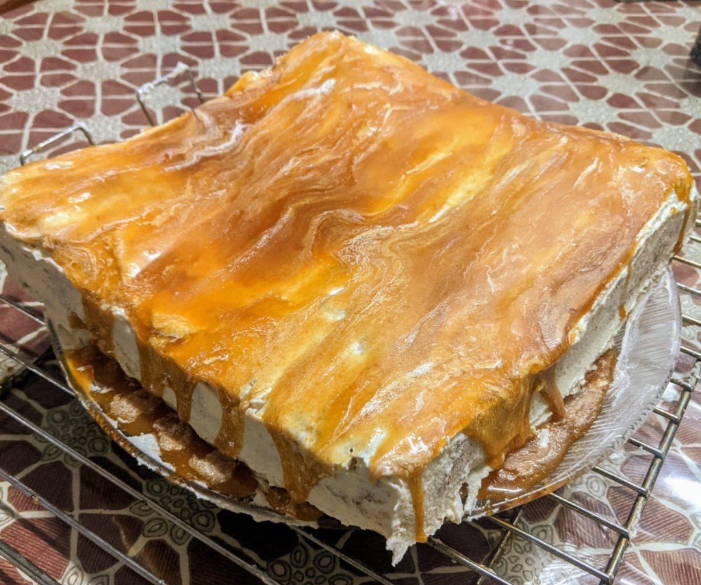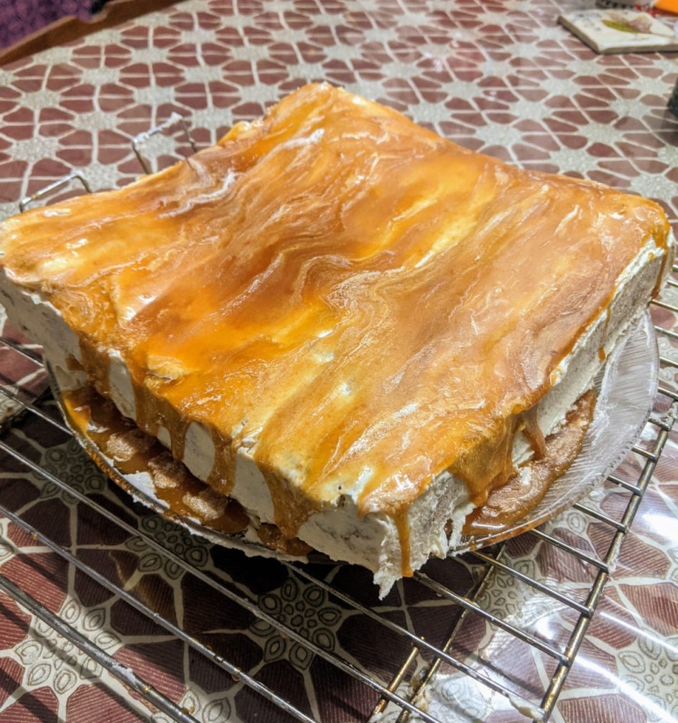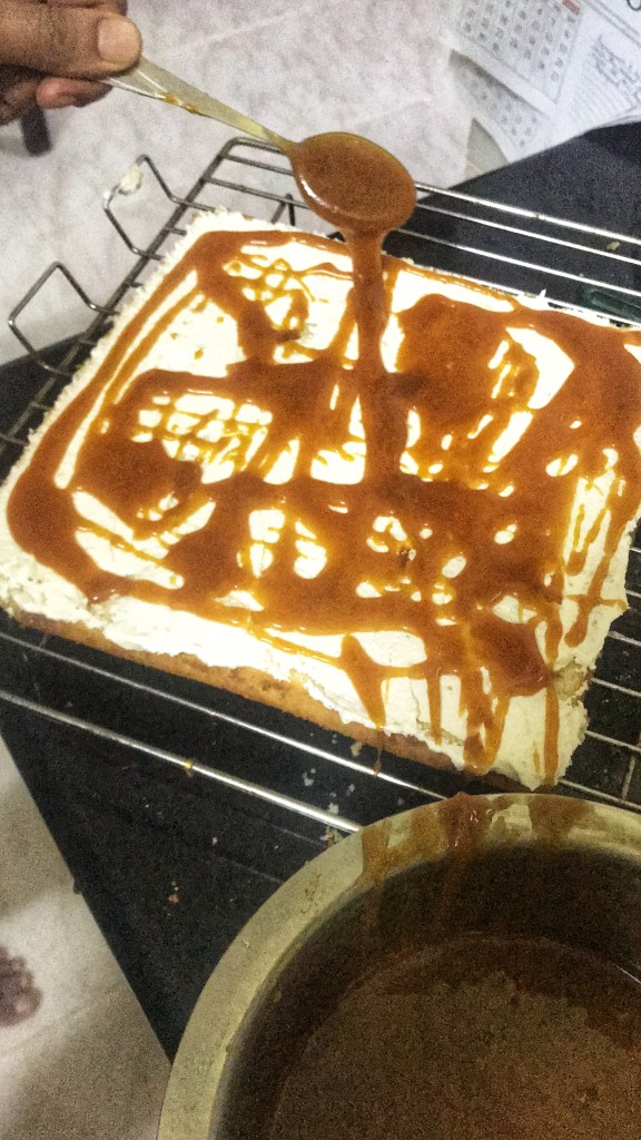It is my mother’s birthday and having recently discovered she has a soft spot for caramel, my brother and I decided to make a caramel cake which was basically a vanilla tea cake, sandwiched with vanilla buttercream and with caramel drizzled all over it. The caramel sauce recipe is by the ultra talented Tulsi (IG: @tea_basil) – please follow her for tips & tricks. It was so much fun to make and I hope you like it too!!