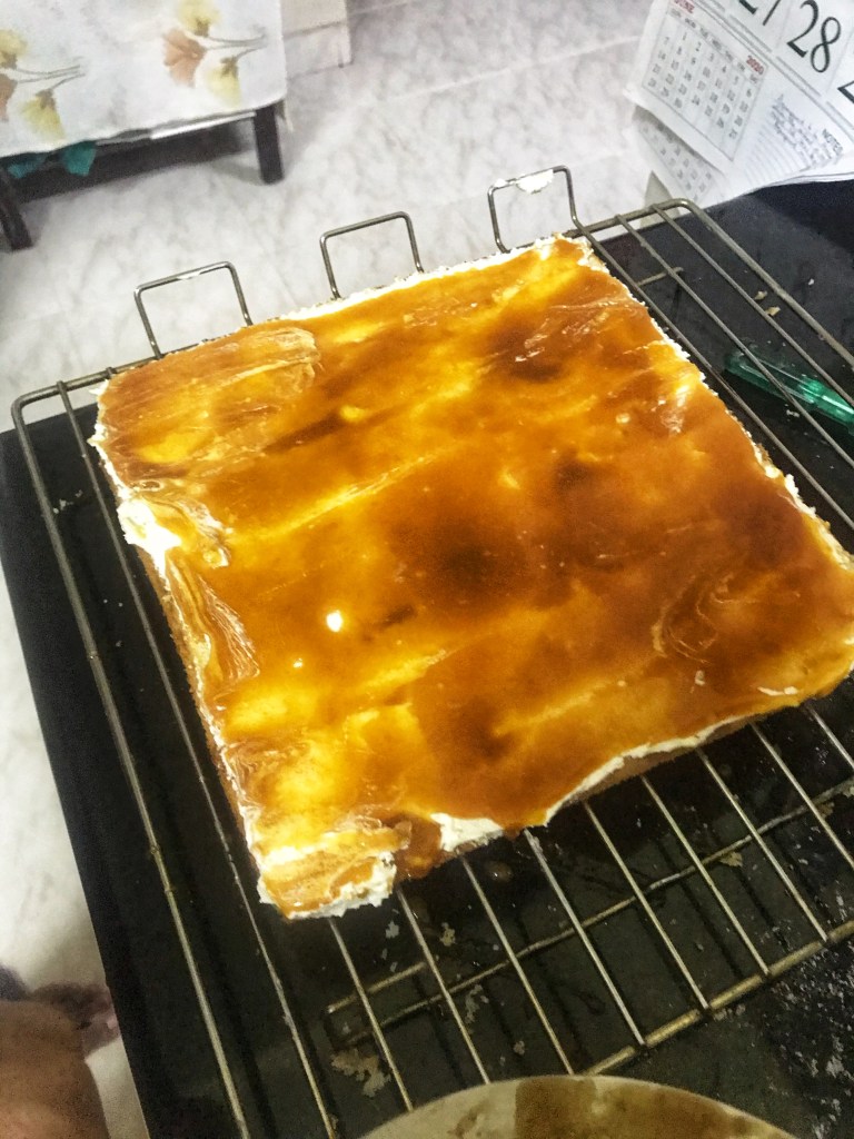 - Drizzle over caramel sauce and then gently spread it over the buttercream so it’s a second layer (if you don’t spread it then some parts of the cake will have toooo much caramel and some parts will be too little)