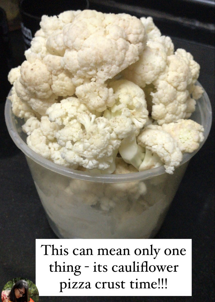 - Make sure the cauliflower is dry as can be. Otherwise you won’t get a ‘crust’ but you would probably have to scoop it out and eat like a salad bowl coz it just falls apart