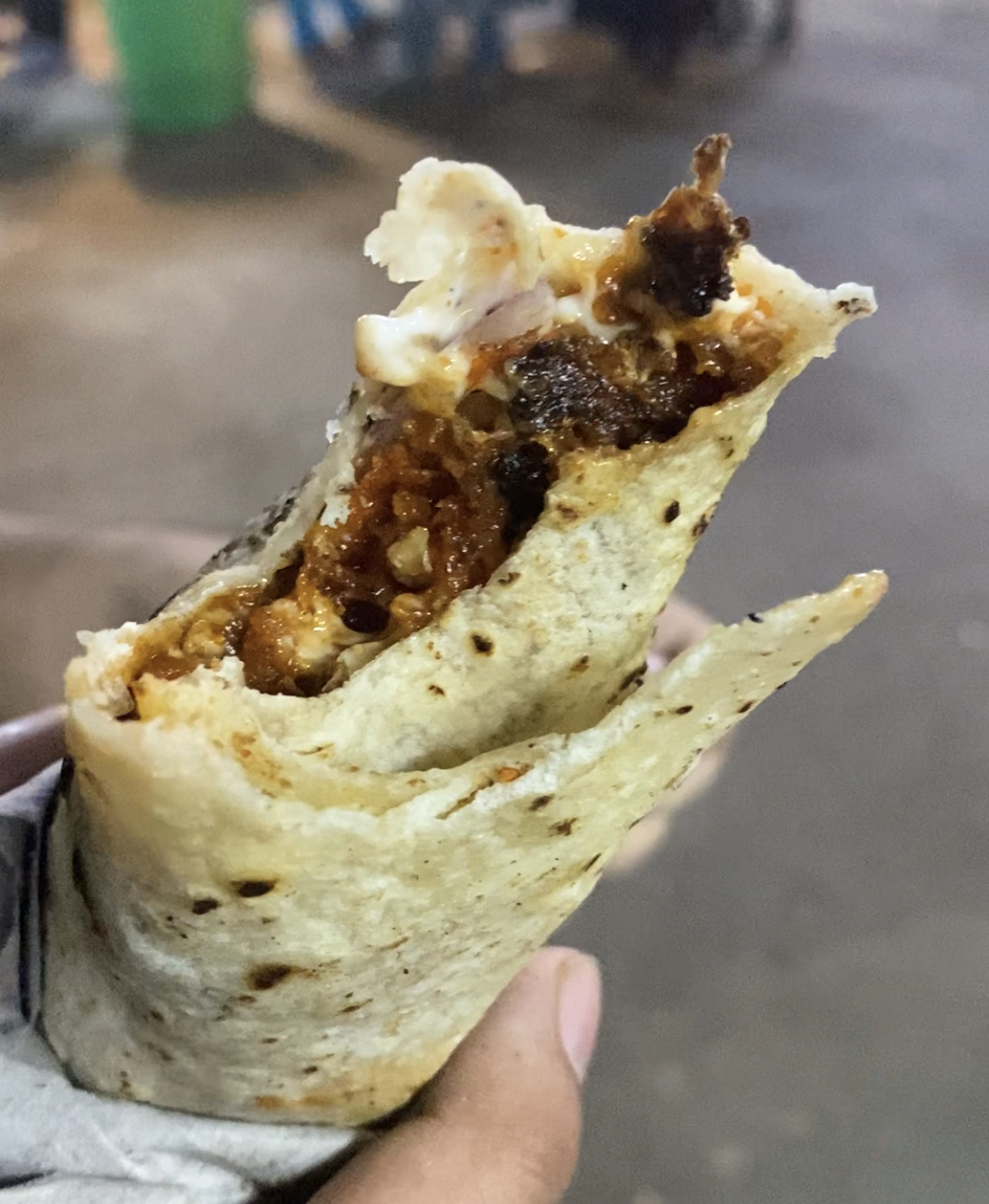 This stall is near the start of the food street and it has soooo many interesting options like schezwan pizza, paneer pizza etc. We picked the pizza dosa and it was very nice!! Light, thin and topped with mayo, cheese, veggies & hot sauce (Tbh any dosa is awesome heheh) – it’s quite filling though for 2 people. (I think it was Rs 80)