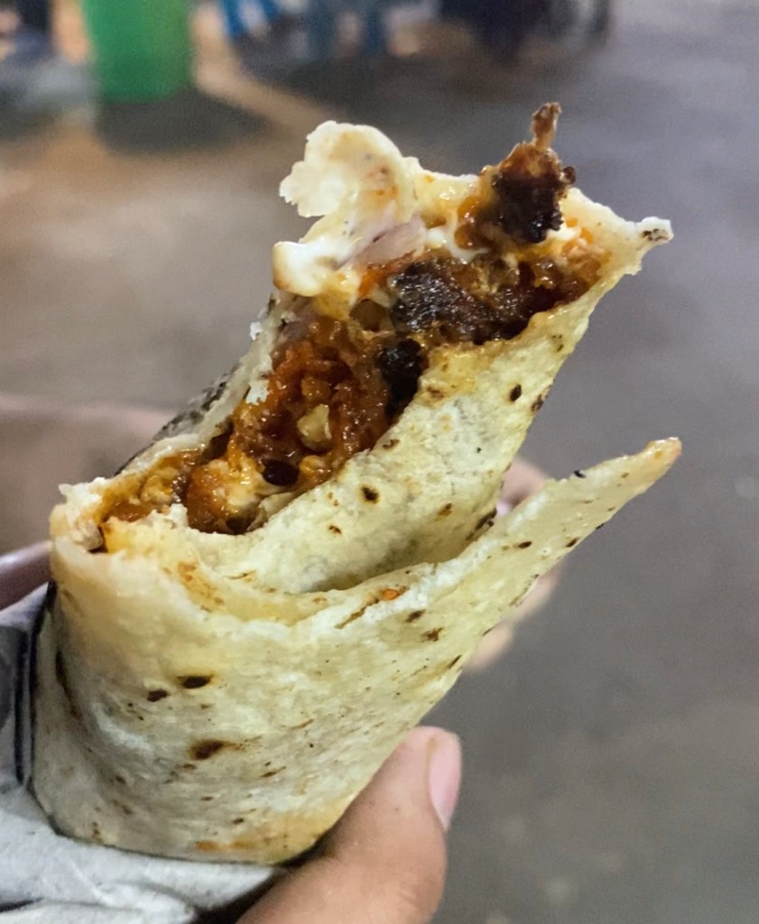 Kathi rolls: This stall had multiple kathi roll options like chilly paneer, paneer manchurian, gobi manchurian etc. The lists we saw recommended gobi manchurian which was served in a hot kathi roll with some mayo & onions. interesting concept but the only downside was that it took FOREVER to get the roll as it was quite crowded (even though it was a weekday) – It cost about Rs 80 I think,